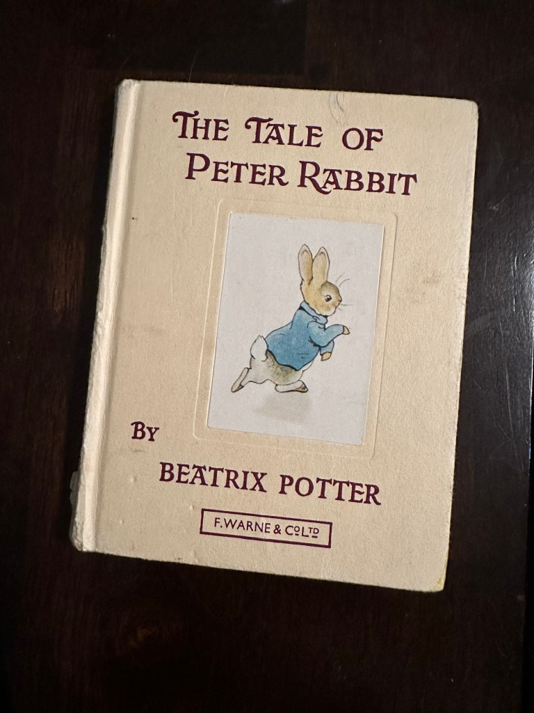 As my journey into children's literature begins, I was compelled to begin with one of my favorite children's books of all time, The Tale of Peter Rabbit, by Beatrix Potter. Pictured to the left is the copy I have had since childhood (circa 1970's). There is no publishing date inside.